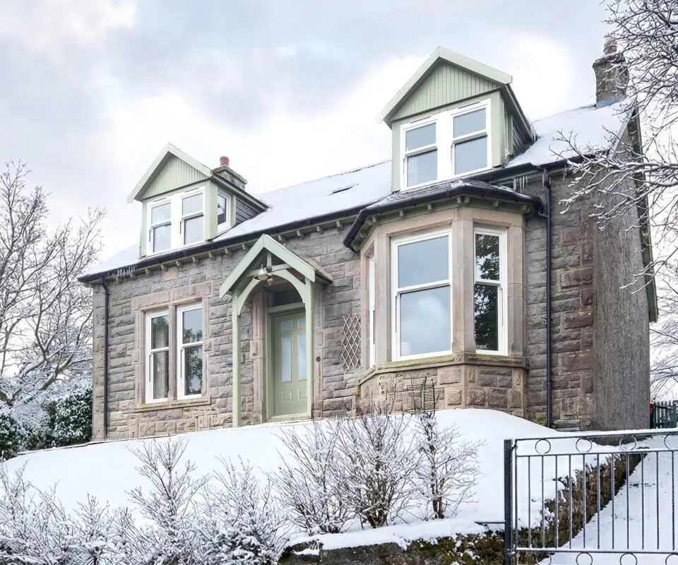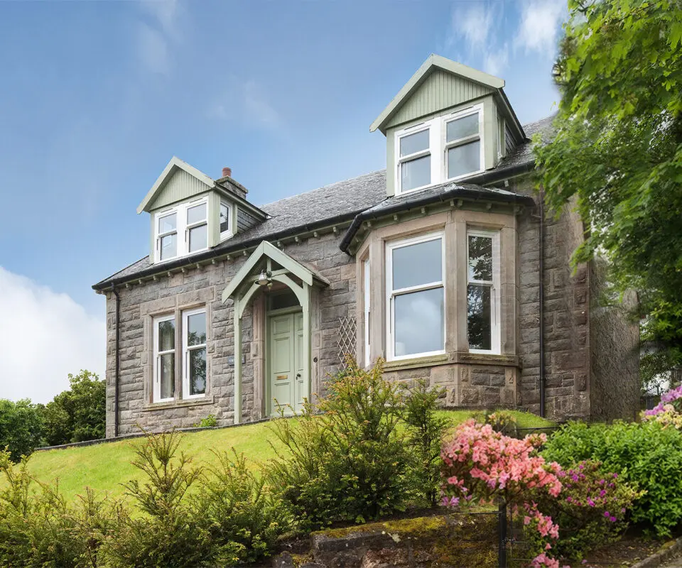 Lorimer sliding sash windows in anthracite grey bring a contemporary style to the exterior of this beautiful sandstone home in Kilmacolm. Internally a brilliant white finish complements the original wainscot panelling. The customer is delighted with the completed look and found that ‘the process is absolutely seamless‘.