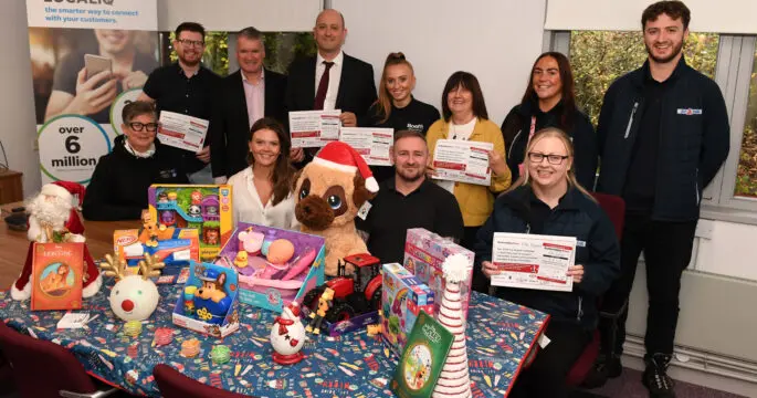 Photo of CR Smith apprentices with chairman Gerard Eadie