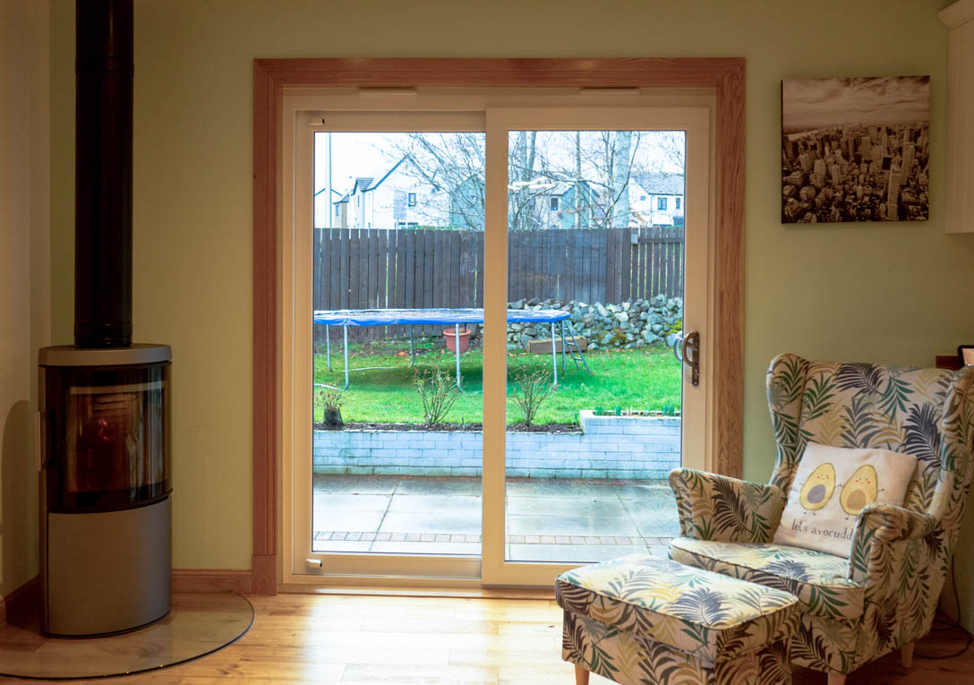 After deciding on the window and door styles for the property, Mrs Bremner was eager to see what options were available for the internal sills. She chose our royal oak solid timber option for the window sills and patio door surrounds, which matches perfectly with the family’s new kitchen worktops, which are solid oak.