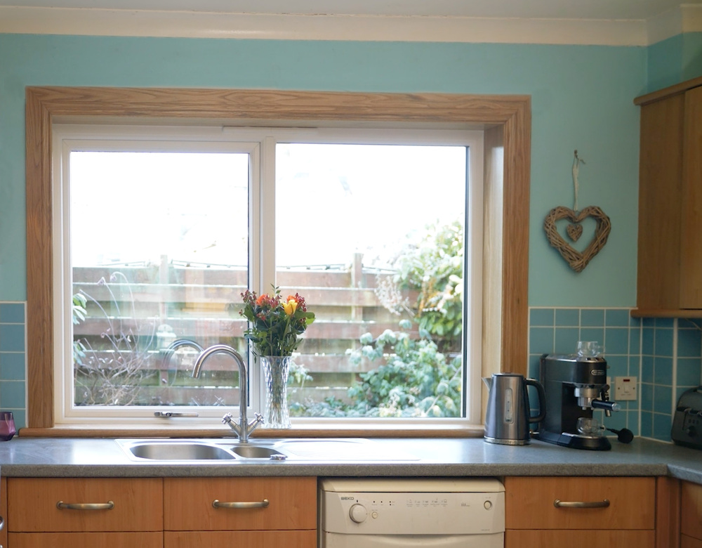 To further enhance the interiors, the once dark sills were replaced with solid royal oak timber sills, complete with matching aprons and surrounds. The warm, natural timber contrasts beautifully with the white frames, turning the windows into a true design feature within every room.